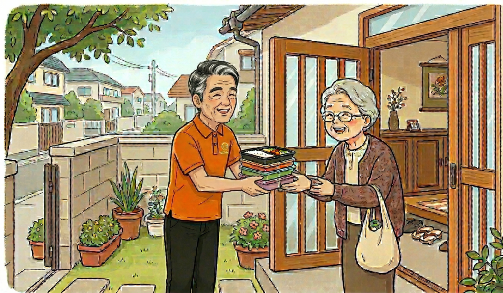 食事を作るのが困難な方等に見守りを兼ねてお弁当をお届けします。